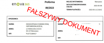 8 maja zostaliśmy powiadomieni o rozsyłaniu fałszywych faktur proforma, które mają sugerować, że pochodzą od enova365. Prosimy zachować czujność.