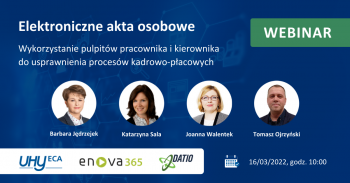 - E-dokumentacja pracownicza w module Kadry i Płace enova365 i pulpicie pracownika.