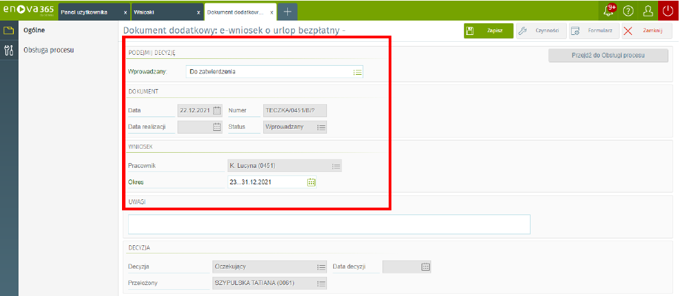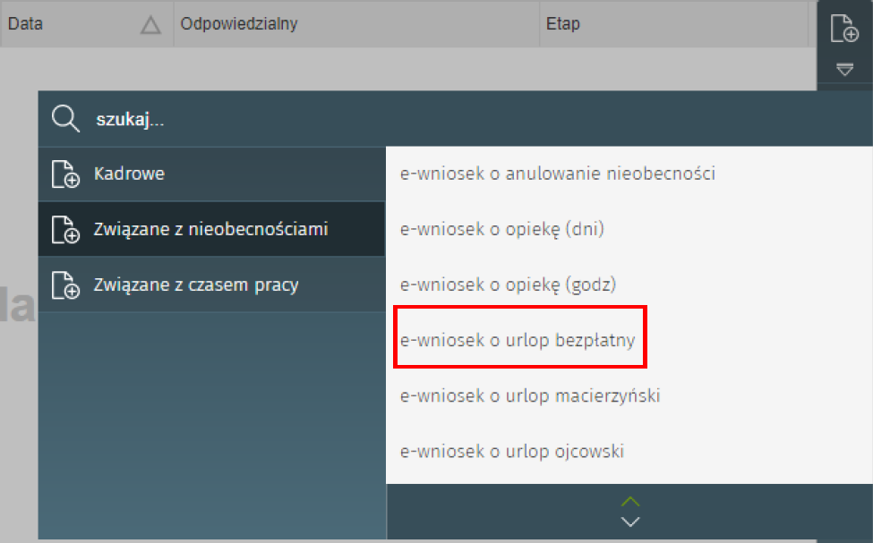 e-wniosek o urlop bezpłatny w enova365