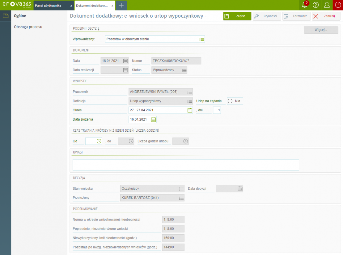 - Urlop na żądanie w systemie enova365