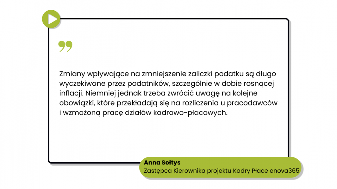 Od stycznia 2023 podatki będą inaczej rozliczane, bo podatnicy będą mogli elastycznie korzystać z kwoty zmniejszającej podatek, w tym upoważnić trzech płatników do stosowania kwoty wolnej od podatku. W przypadku jednego płatnika będzie to 1/12, w przypadku dwóch – 1/24, a przy trzech płatnikach – 1/36 kwoty zmniejszającej podatek. Wejdzie też w życie możliwość rozliczania kwoty zmniejszającej podatek również przez zleceniodawcę.