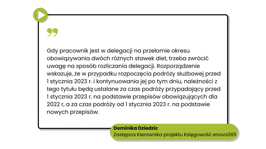 Po podwyżce stawek krajowych w lipcu 2022 r., dokonano ponownej korekty. Dla delegacji krajowych od 1 stycznia 2023 roku stawka diety zostanie podwyższona do 45 zł. Zwiększenie wysokości stawki diety w podróży krajowej wpływa na: