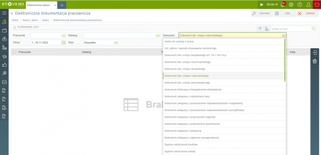 Dokumenty związane z urlopem rodzicielskim i macierzyńskim w module Kadry Płace i HR enova365