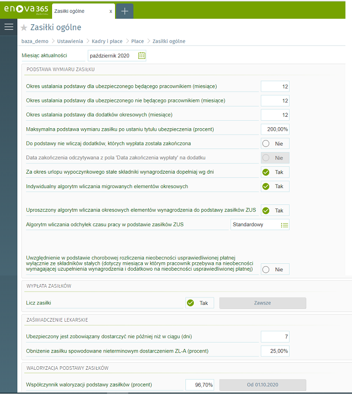 Ustalanie podstawy wymiaru zasiłków w enova365